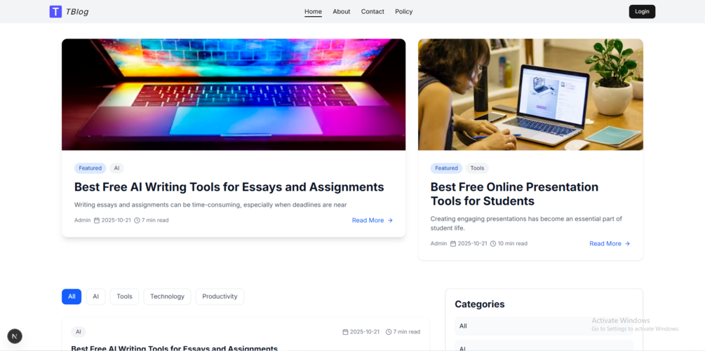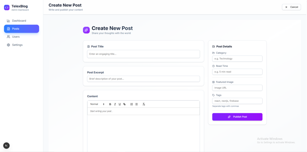 • Firebase Admin Dashboard: Manage posts, categories, and users in real-time through a secure, intuitive dashboard.