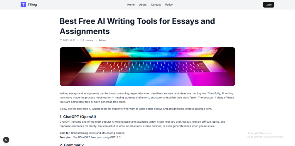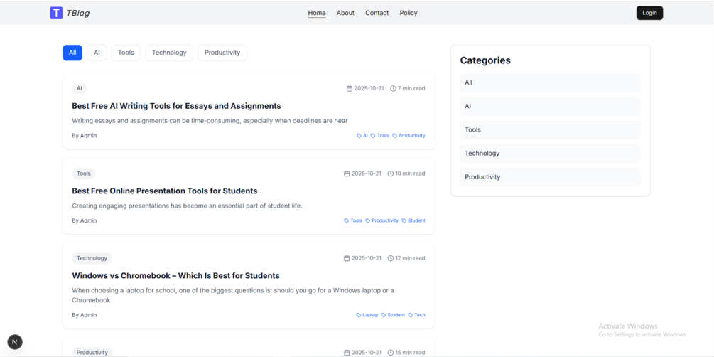 • Next.js Powered: Built on the latest Next.js framework for fast, SEO-friendly, and scalable blogs.